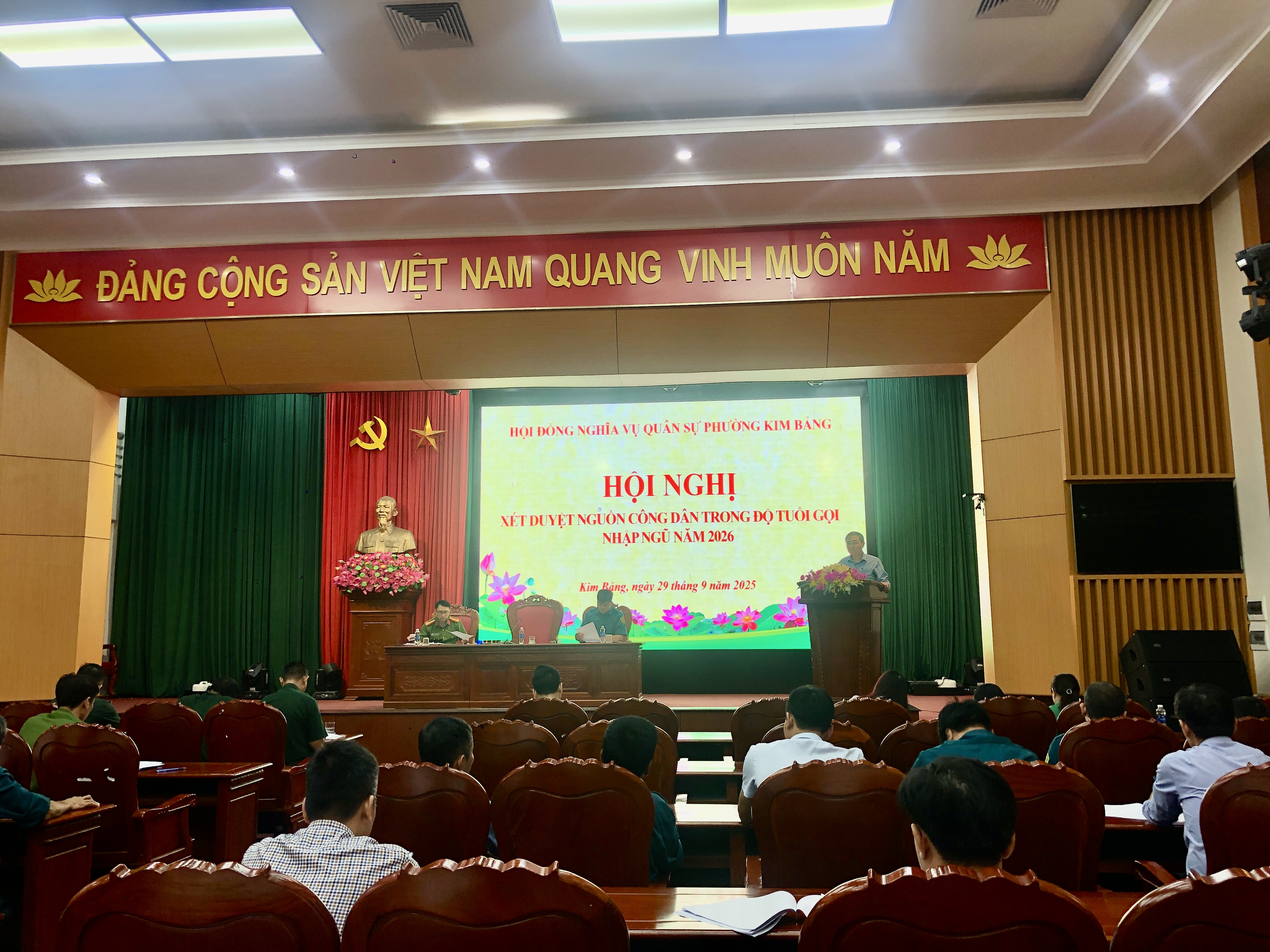 Hội đồng nghĩa vụ quân sự phường Kim Bảng vừa tổ chức hội nghị xét duyệt nguồn công dân trong độ tuổi gọi nhập ngũ làm cơ sở cho công tác sơ tuyển gọi nhập ngũ năm 2026.